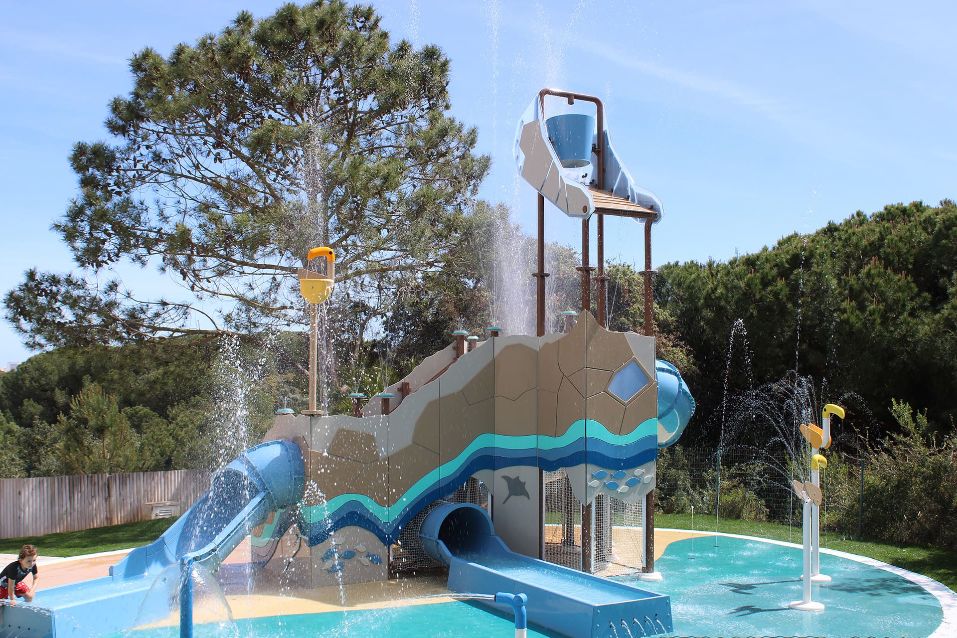 Com uma variedade de jogos de água, escorregas emocionantes, arcos coloridos, um balde gaivota e uma mágica passagem de água, este parque promete divertir as crianças durante a sua estadia no Algarve e proporcionar umas férias perfeitas para toda a família no nosso Resort Tudo Incluído.