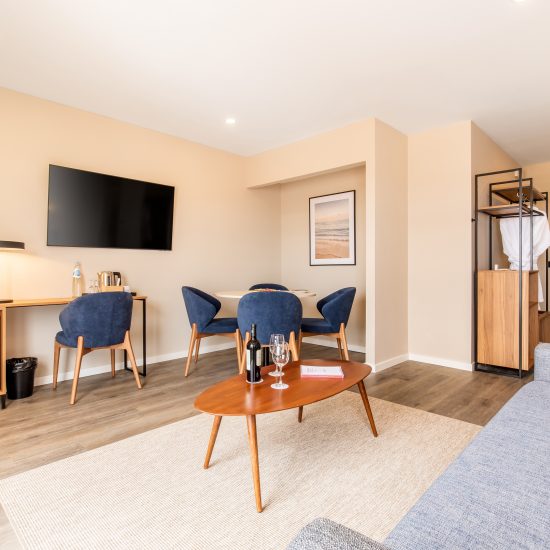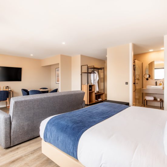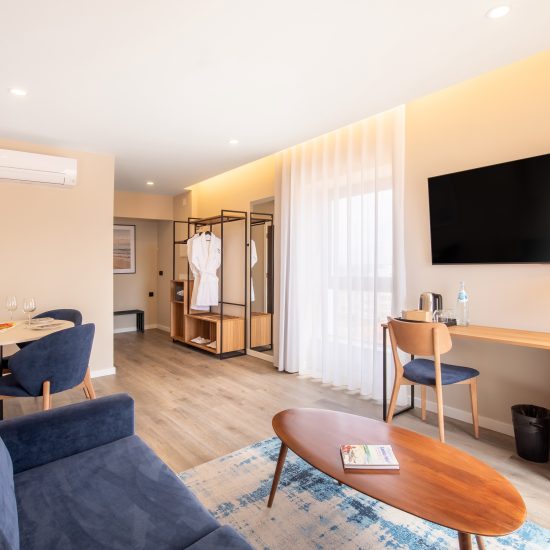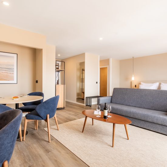 Com um estilo moderno, as novas suites disponibilizam 2 camas individuais, uma televisão de ecrã plano, secretária, zona de estar com sofá cama, mesa e cadeiras, ar condicionado individual um WC privativo com cabina de duche ao nível do chão com produtos de higiene pessoal gratuitos, secador de cabelo bem como Wi-Fi gratuito. Adicionalmente, as suites disponibilizam, telefone, cofre e comodidades para preparar chá e café. Localizadas no 7º e 8º pisos, as suites oferecem magnificas vistas sobre a cidade, o porto e o Oceano Atlântico.